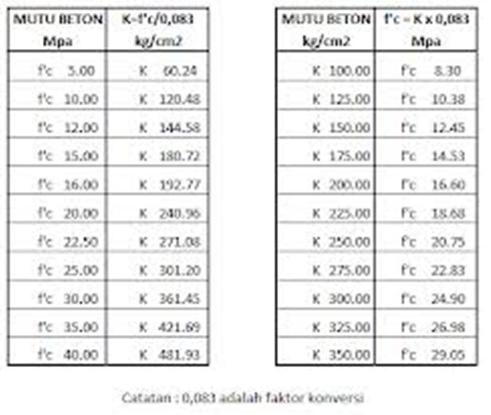 Panduan Praktis Tabel Konversi Mutu Beton K Kg Cm2 Ke F C Mpa Ilmu Beton