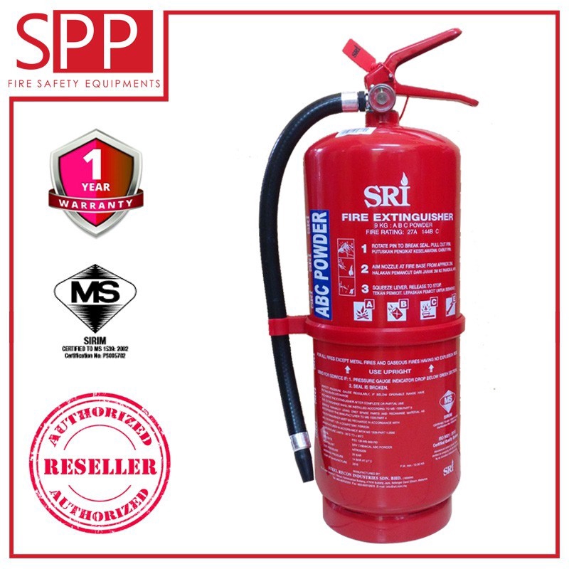 Sirim Certified Sri 9kg Abc Dry Powder Type Fire Extinguisher Shopee Malaysia