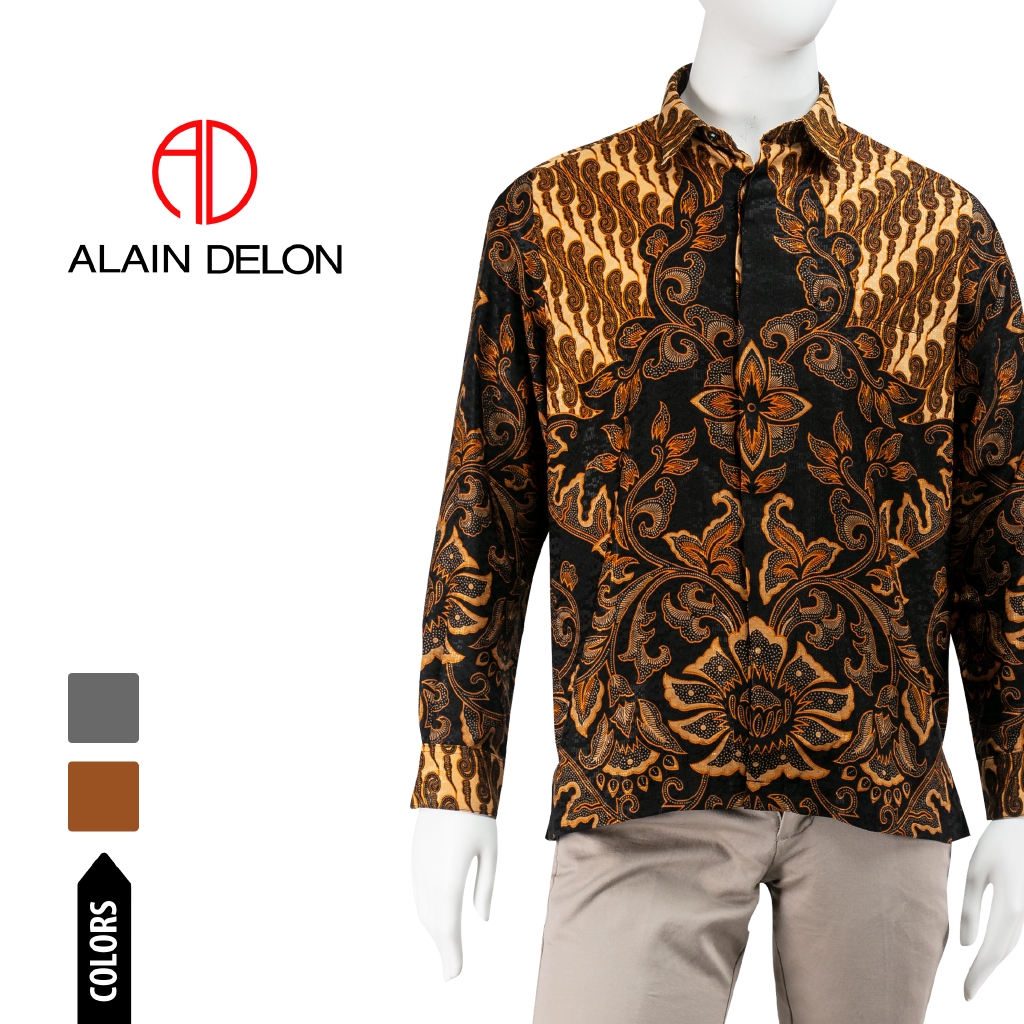 Alain Delon Long Sleeve Batik Silk Look Shirt 15420001 Shopee Malaysia