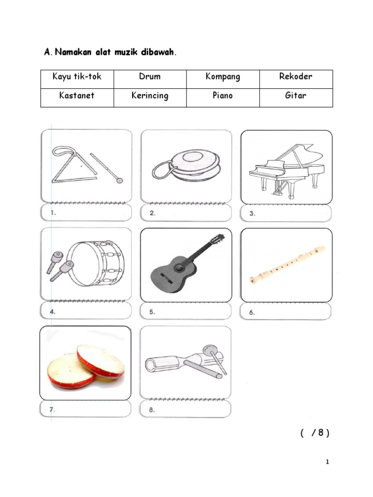 Kayu Tik Tok Drum Kompang Rekoder Kastanet Kerincing Piano Gitar