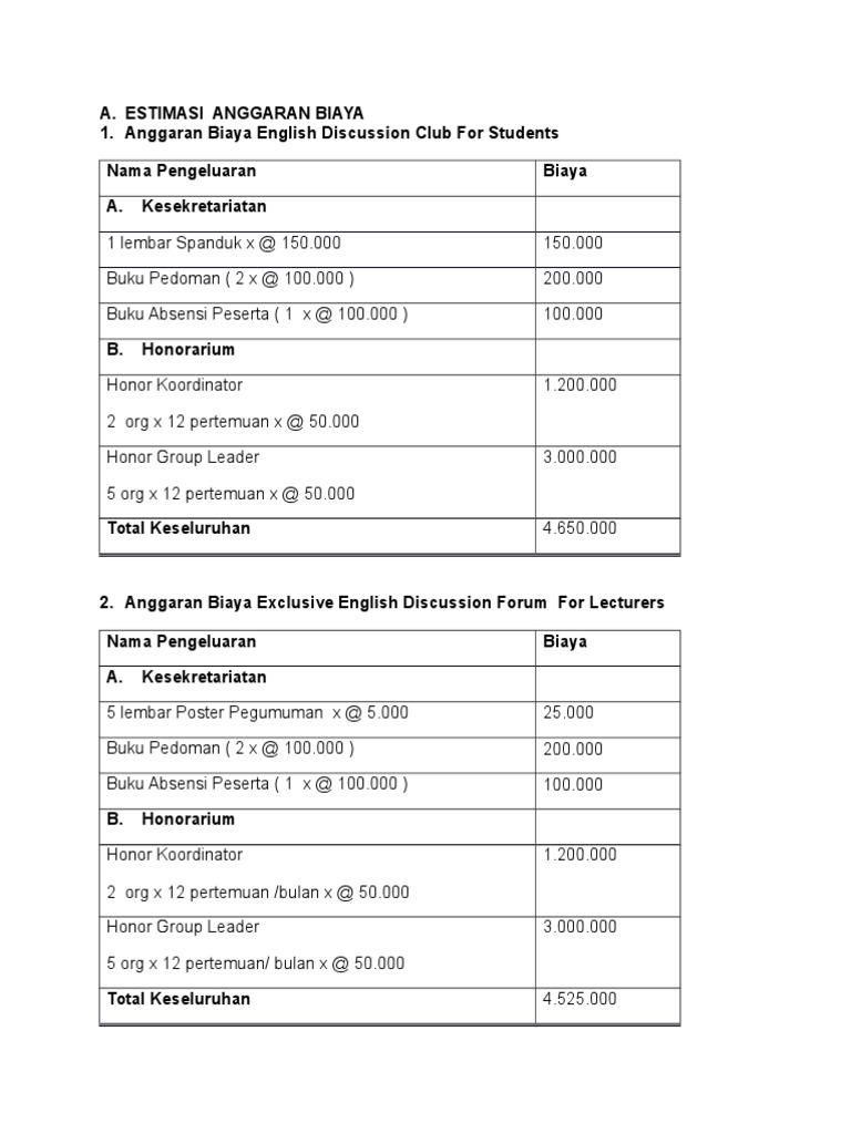 Estimasi Anggaran Biaya