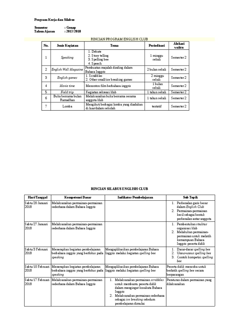 Silabus English Club