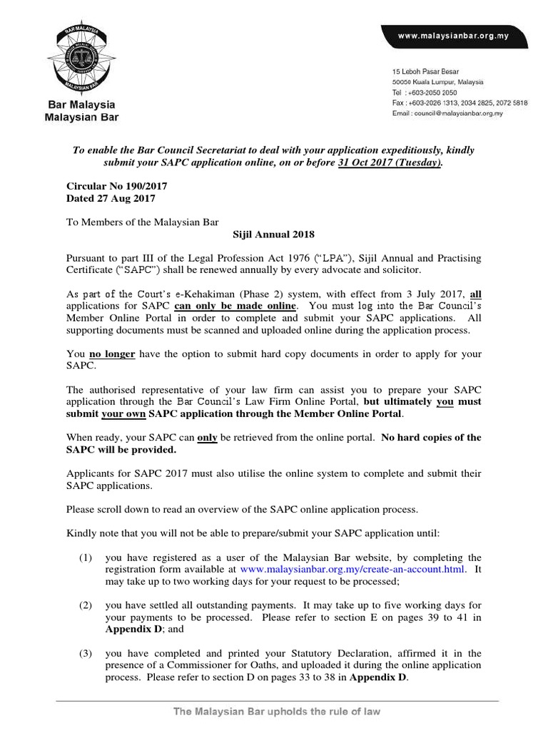 Malaysian Bar 2019 Sijil Annual Application Click Facebook