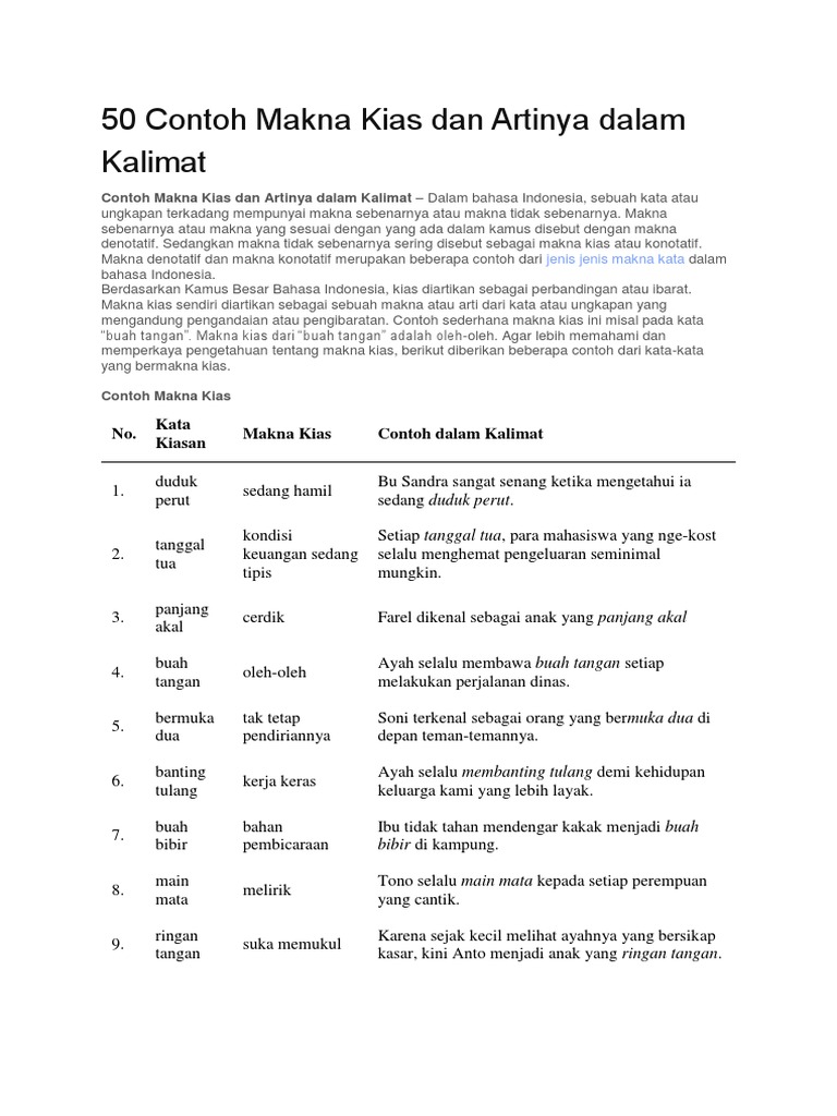 95 Kata Kata Kiasan Makna Kias Dan Contohnya Dalam Kalimat