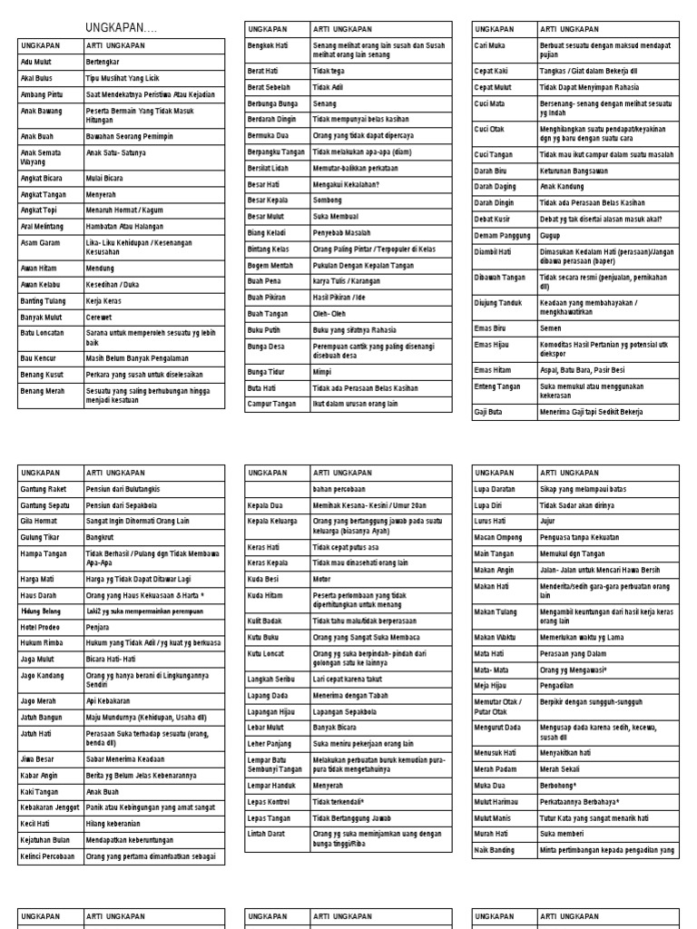 120 Contoh Ungkapan Dan Artinya Idiom Bahasa Indonesia A Z Salamadian