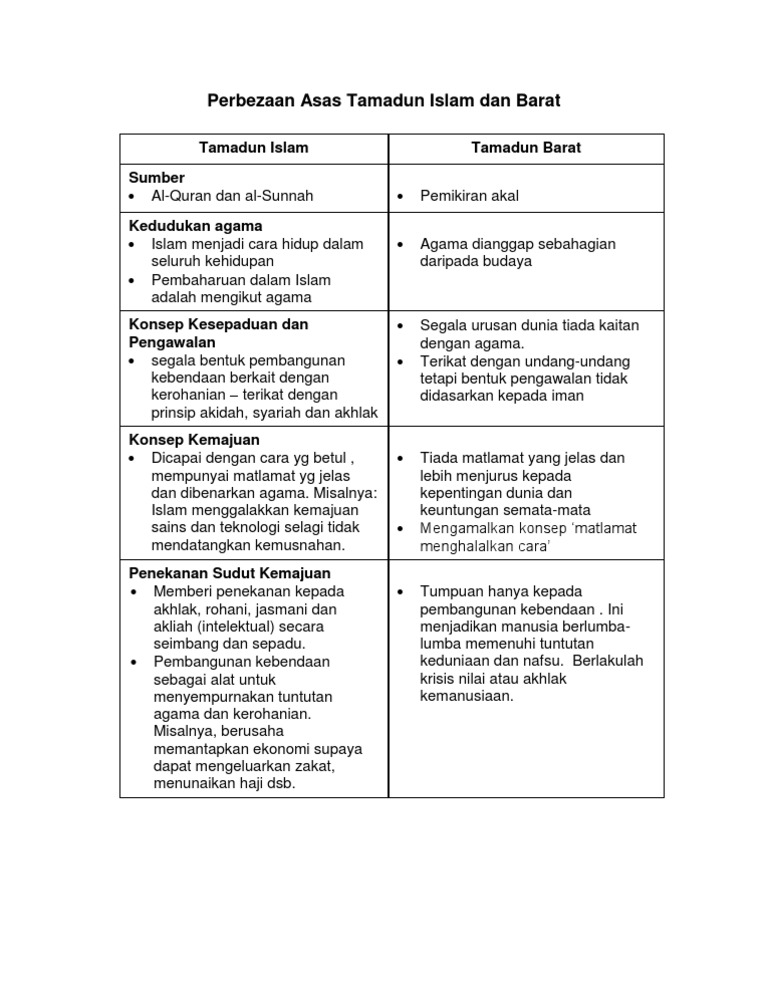Perbezaan Asas Tamadun Islam Dan Barat