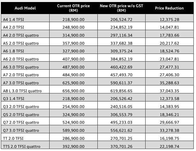 Motoring Malaysia Zero Gst Audi Malaysia Announces 0 Gst Prices For Their Vehicles