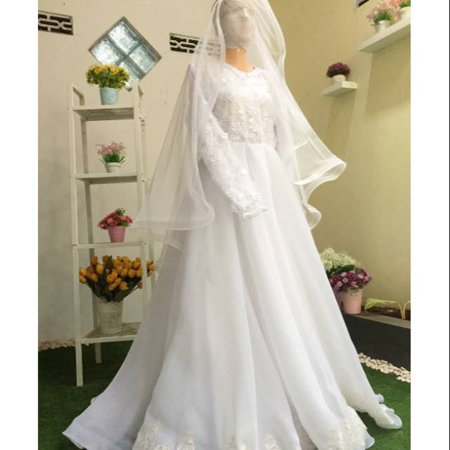 Gaun Pengantin Muslimah Syar I Akad Walimah Putih Wedding Dress Muslimah Walimah Syar I Shopee Indonesia