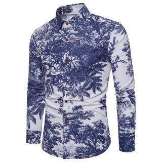 Men Kemeja Kasual Legan Panjang Print Baju Batik Lelaki Slim Fit Floral Formal Shirts Shopee Indonesia
