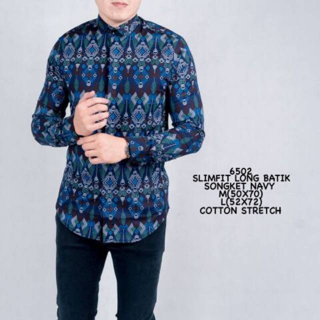 Jual Kemeja Batik Pria Lengan Panjang Baju Batik Songket Cowok Slimfit Jakarta Barat Tinashopingi Tokopedia