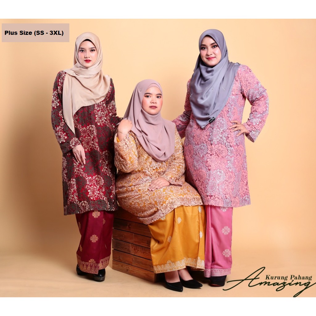 Baju Kurung Pahang Plus Size Amazing Songket Lace Ss Hingga 3xl Shopee Malaysia