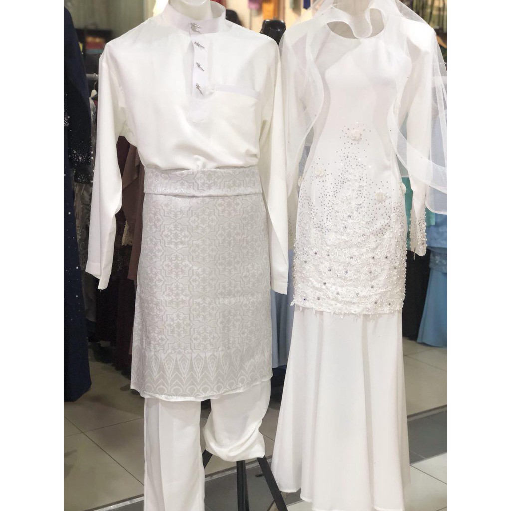 Sedondon Set Couple Baju Kurung Moden Baju Melayu Nikah Off White Qaira Areen Shopee Malaysia
