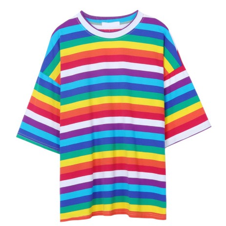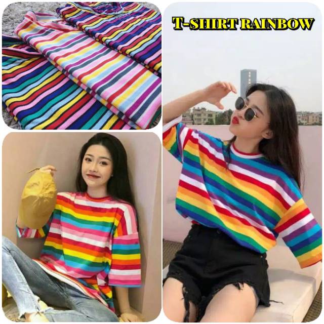 Diskon Kaos T Shirt Longgar Lengan Pendek Motif Garis Warna Pelangi Cuci Gudang Di Lapak Jess Limit Outlet Bukalapak