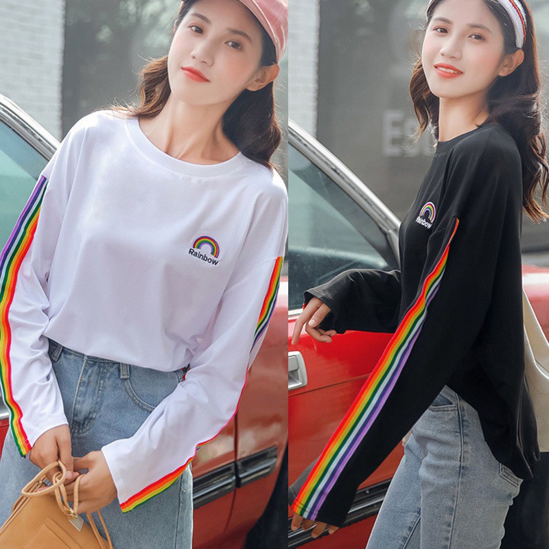 Kaos T Shirt Round Neck Lengan Panjang Motif Print Kartun Pelangi Untuk Wanita Shopee Indonesia