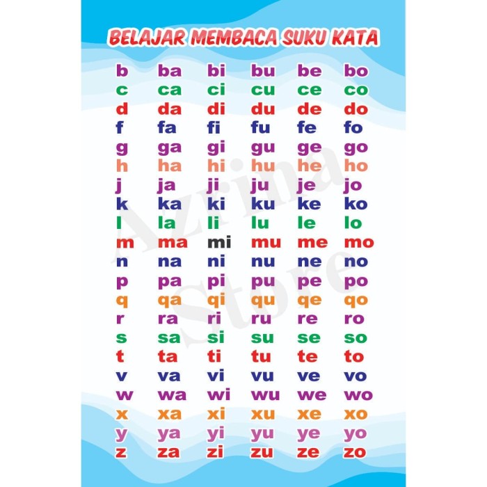 Poster Suku Kata Belajar Baca Alphabet Di Lapak Lumalumicom Bukalapak