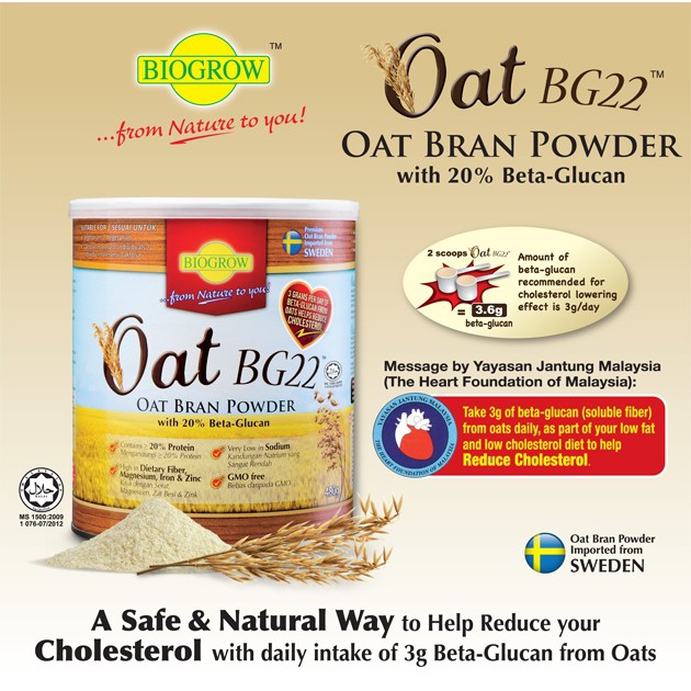 Biogrow Oat Bg22 Oat Bran Powder With Beta Glucan 480g Exp 01 2022 Bg22 Beta Glucan Trans Fat Free Lazada