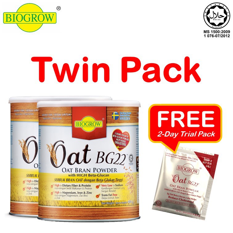 Biogrow Oat Bg22 Oat Bran Powder With Beta Glucan 480g X 2 Twin Exp 01 2022 Bg22 Beta Glucan Trans Fat Free Lazada