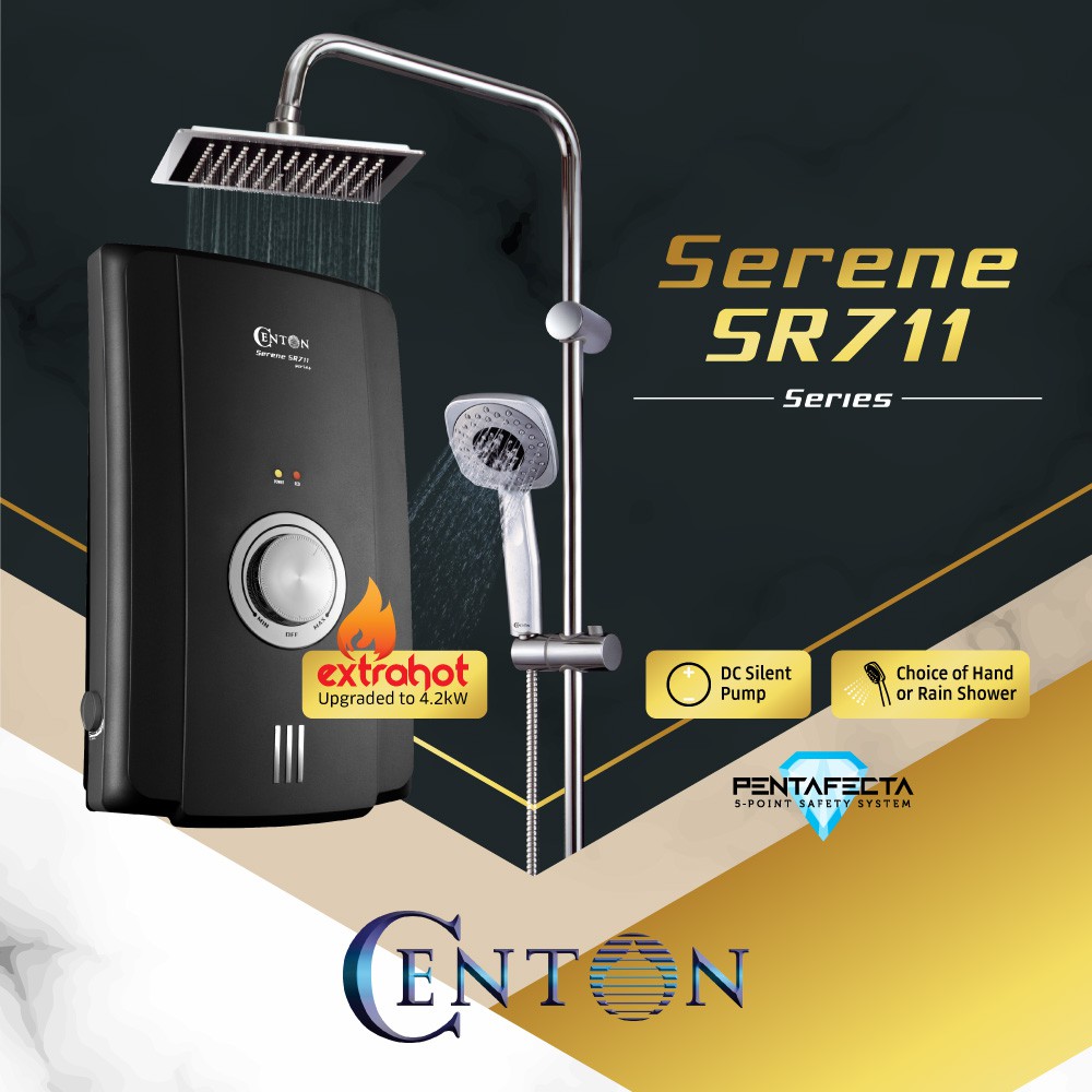Centon Water Heater Rain Shower Serene Series Sr711 Non Pump Silent Dc Pump Shopee Malaysia