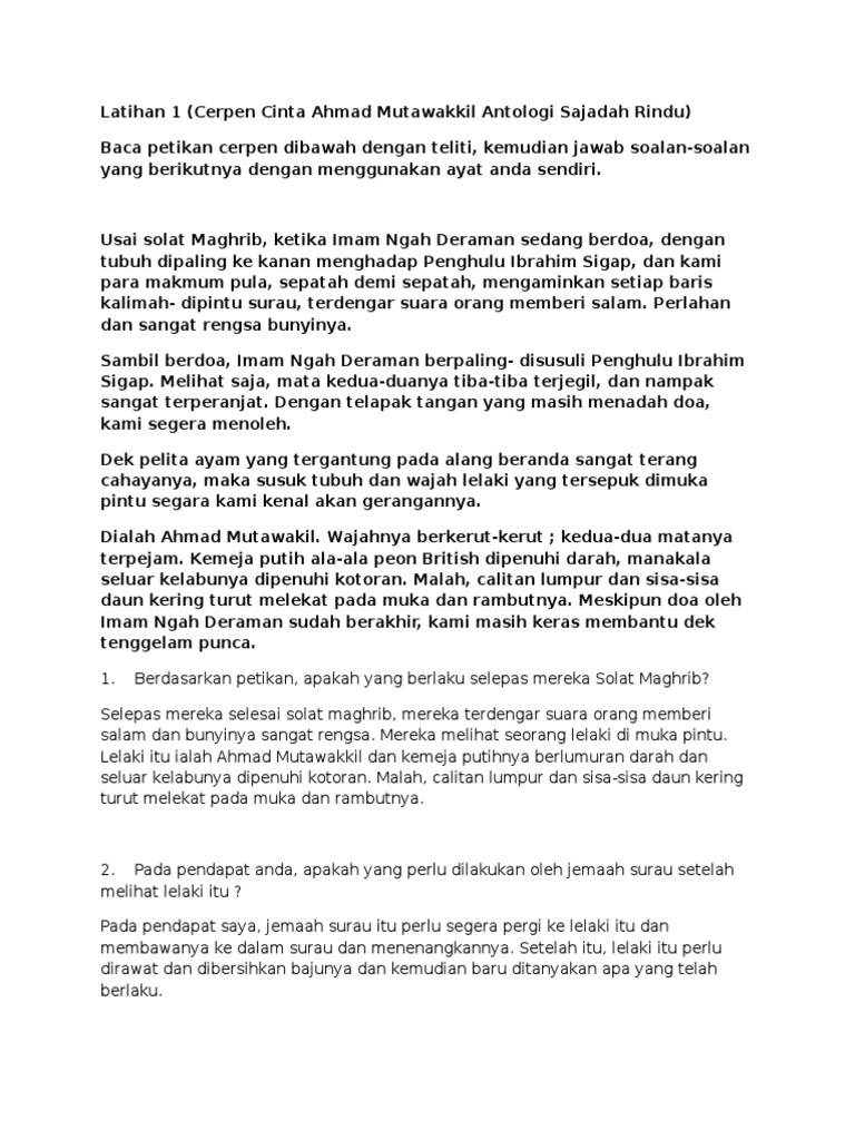 Soalan Pemahaman Cerpen Cinta Ahmad Mutawakkil Persoalan M