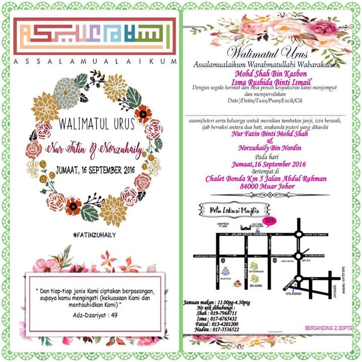 Undangan Majlis Perkahwinan Fatin Zuhaily At Chalet Bonda Parit Raja Muar