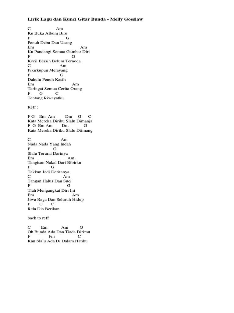 Lirik Dan Not Angka Lagu Bunda Melly Goeslaw Pianika Piano Not Lirik Lagu