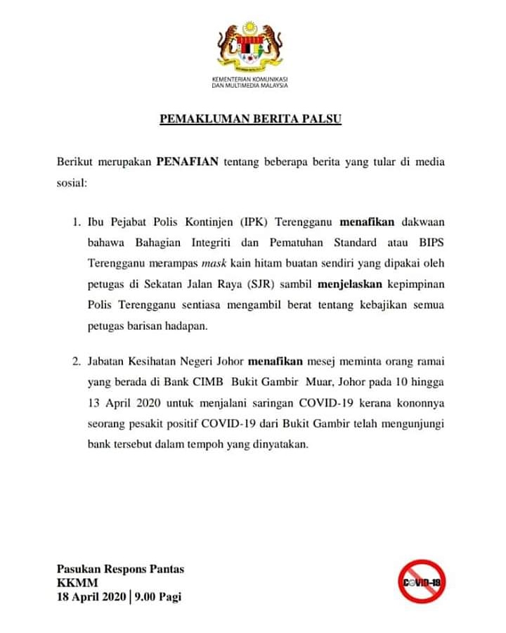 Semak Fakta Polis Terengganu Nafi Dakwaan Rampas Topeng Muka Buatan Sendiri Petugas Sjr Astro Awani