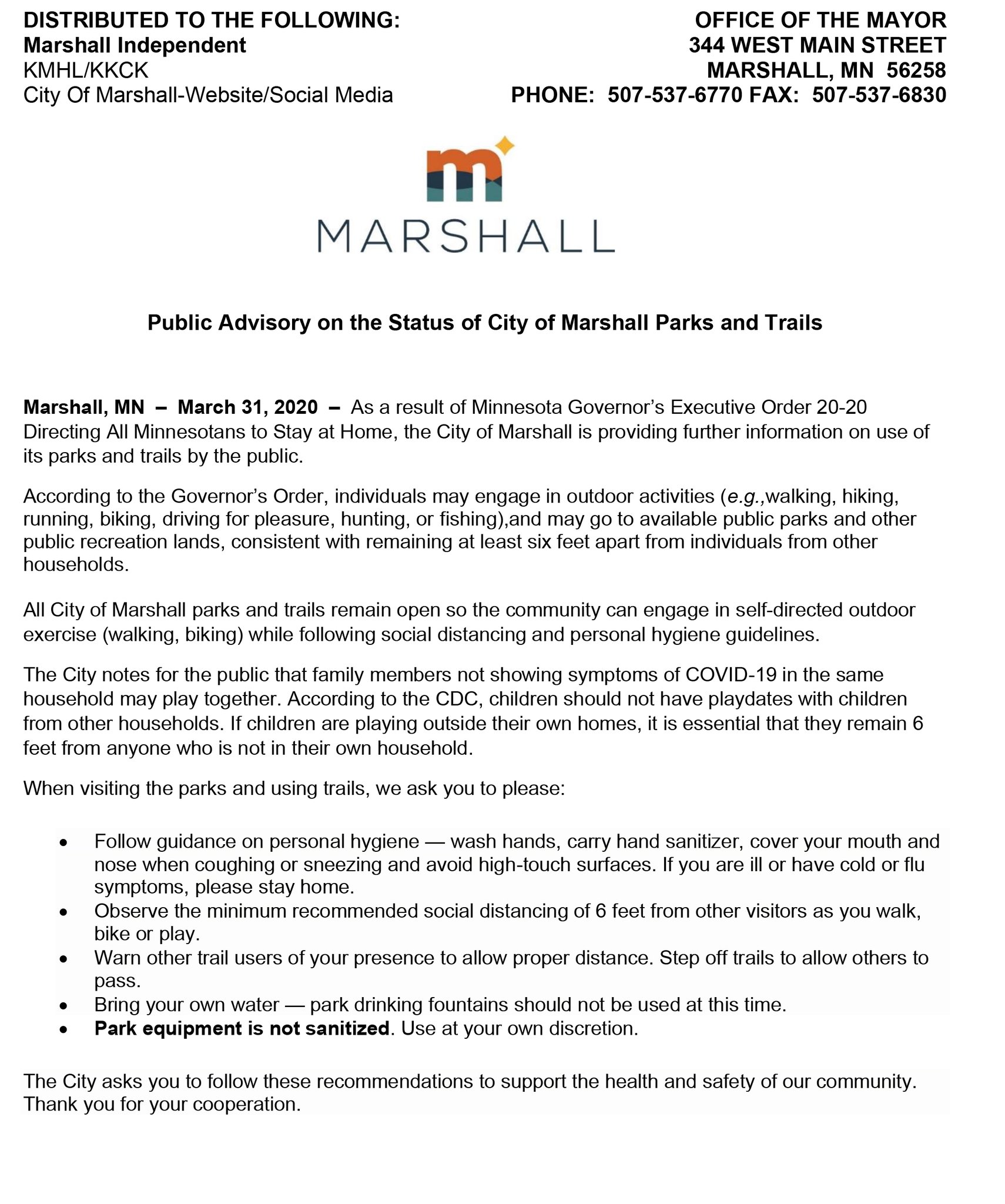 City Of Marshall On Twitter Here Is Some Information Regarding The Status Of The City Of Marshall Parks And Trails You Can Read The Full Release On Our Website At Https T Co Fec6uf0k12 Https T Co O4n1pg6quk