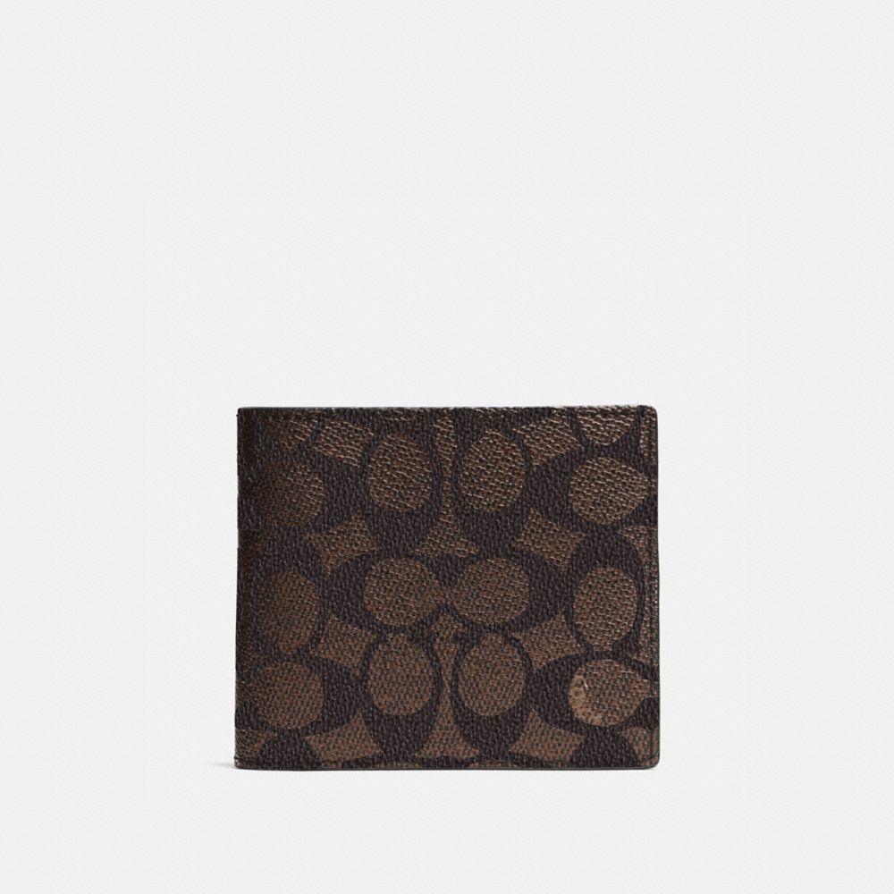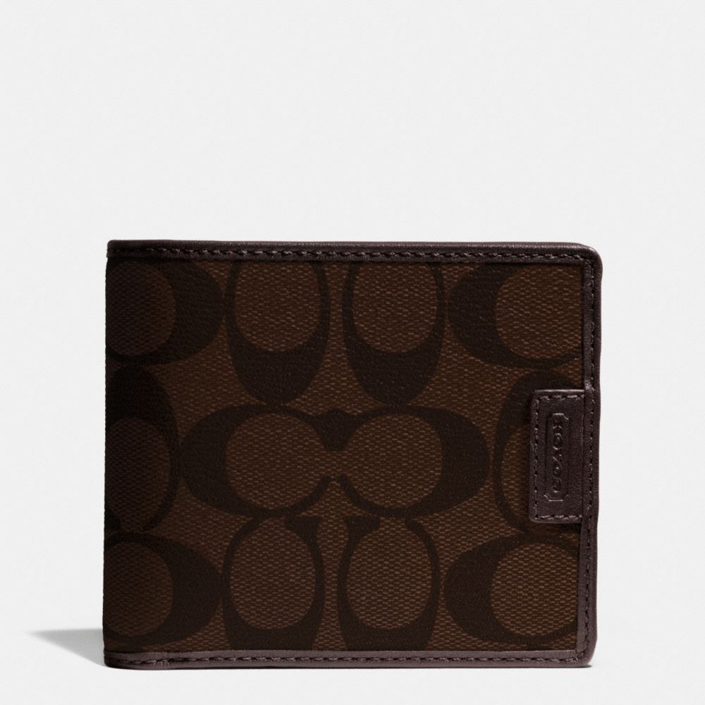 Coach Compact Id Signature Pvc Men Wallet Mahogany Brown