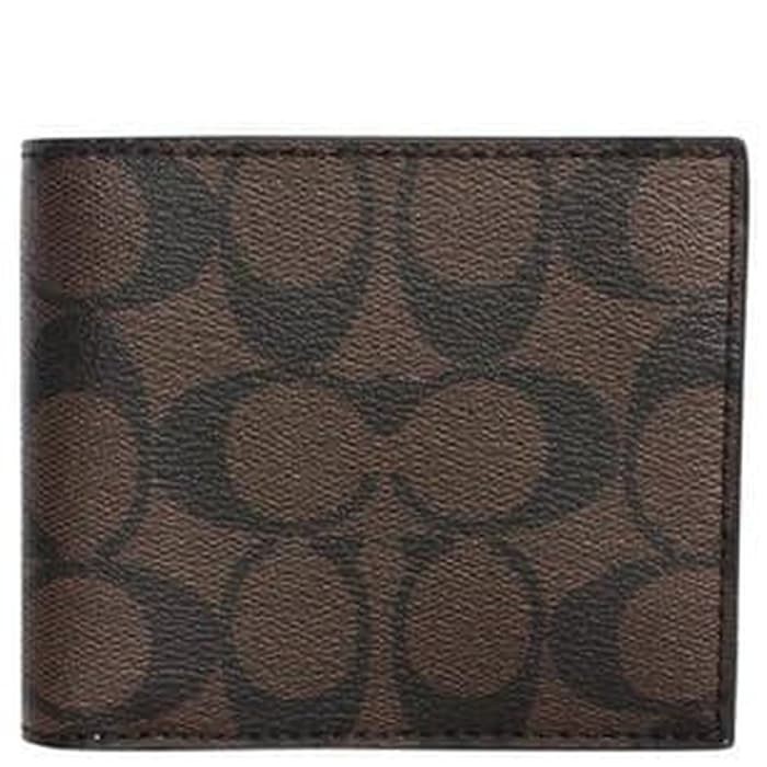 Coach F74993 Compact Id Signature Men Wallet Mahogany Brown Shopee Indonesia