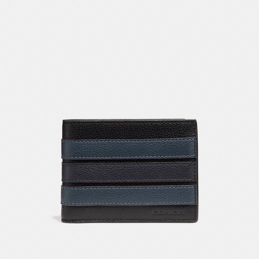 Coach F26171 Slim Billfold Wallet With Varsity Stripe Black Denim Midnight Nvy Coach Men