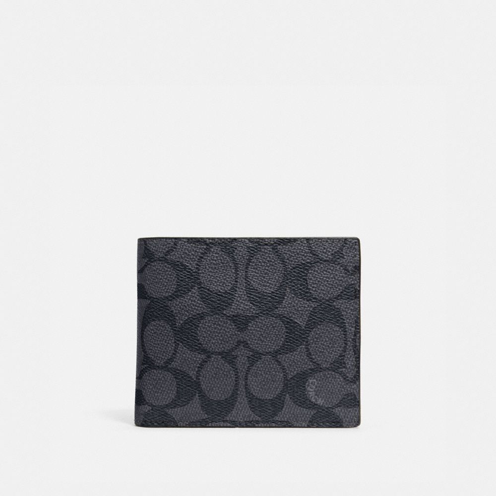 Amazon Com Coach Mens F75083 Double Billfold Signature Wallet Charcoal Black Shoes