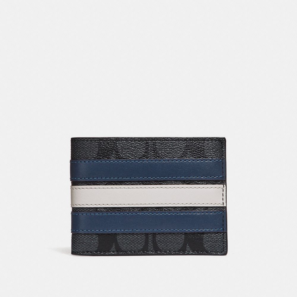 Coach F26173 Slim Billfold Wallet In Signature Canvas With Varsity Stripe Midnight Nvy Denim Chalk Coach Men