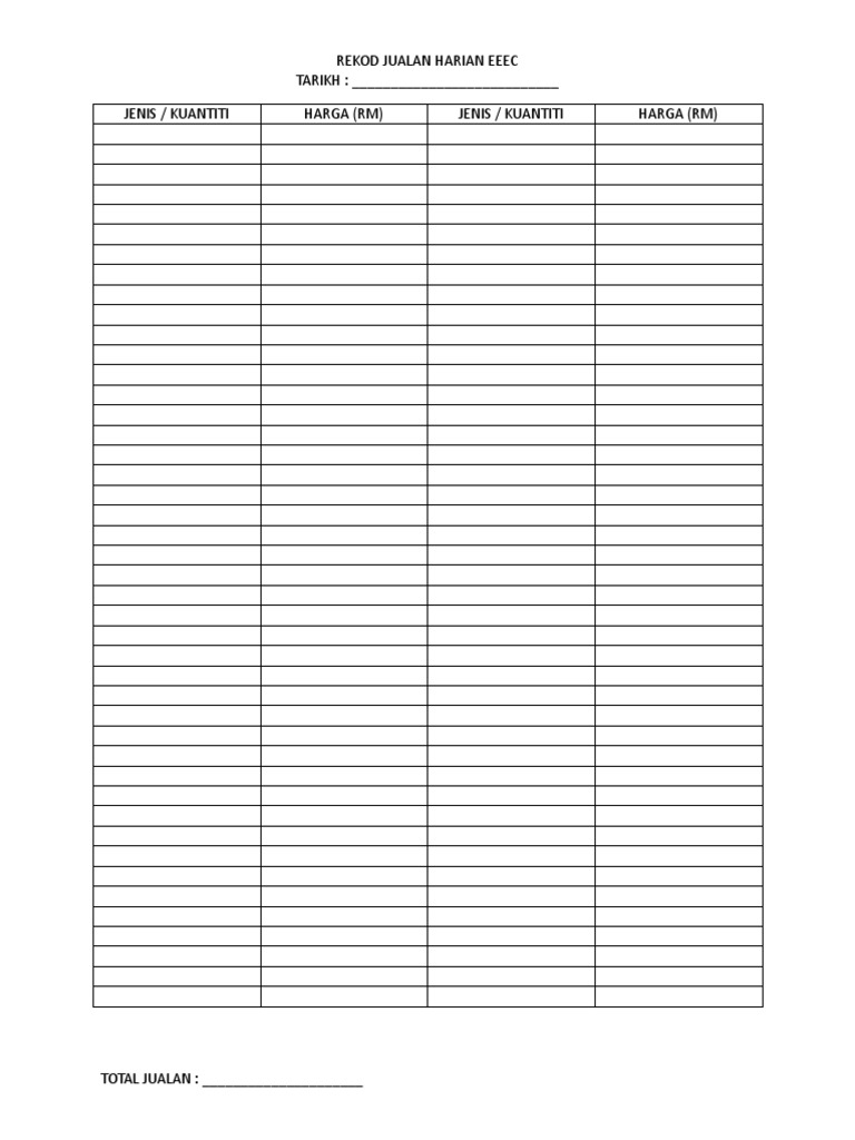 Contoh Rekod Jualan Harian
