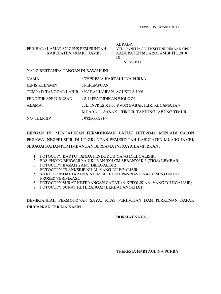 Contoh Surat Lamaran Cpns Muaro Jambi 2018 Format Pdf Download Disini New Normal