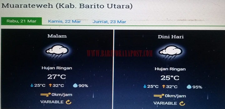 Barito Utara Tiga Hari Berawan Dan Hujan