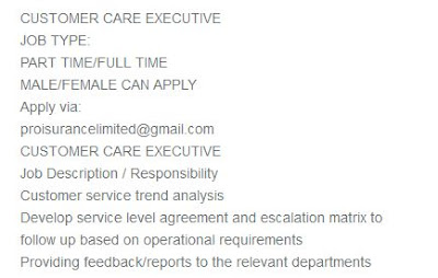 Job News Customer Care Executive