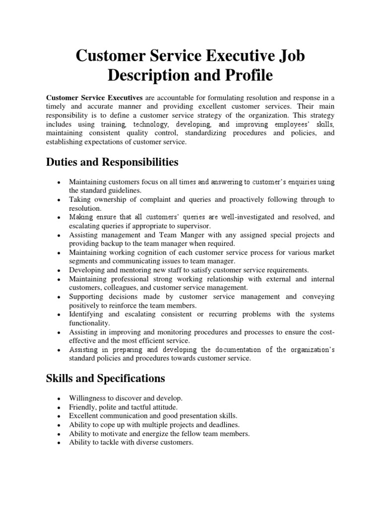 Job Profile Of Customer Service Executive Zoro Blaszczak Co