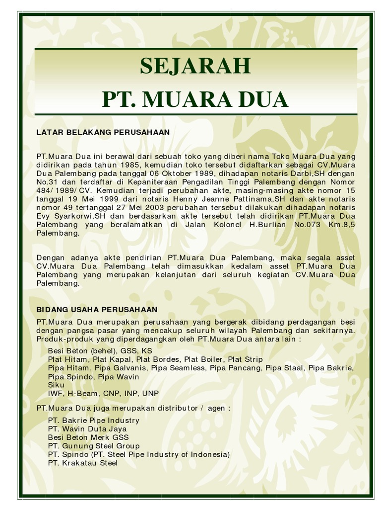 Pt Muara Dua Distributor Toko Jual Besi Palembang