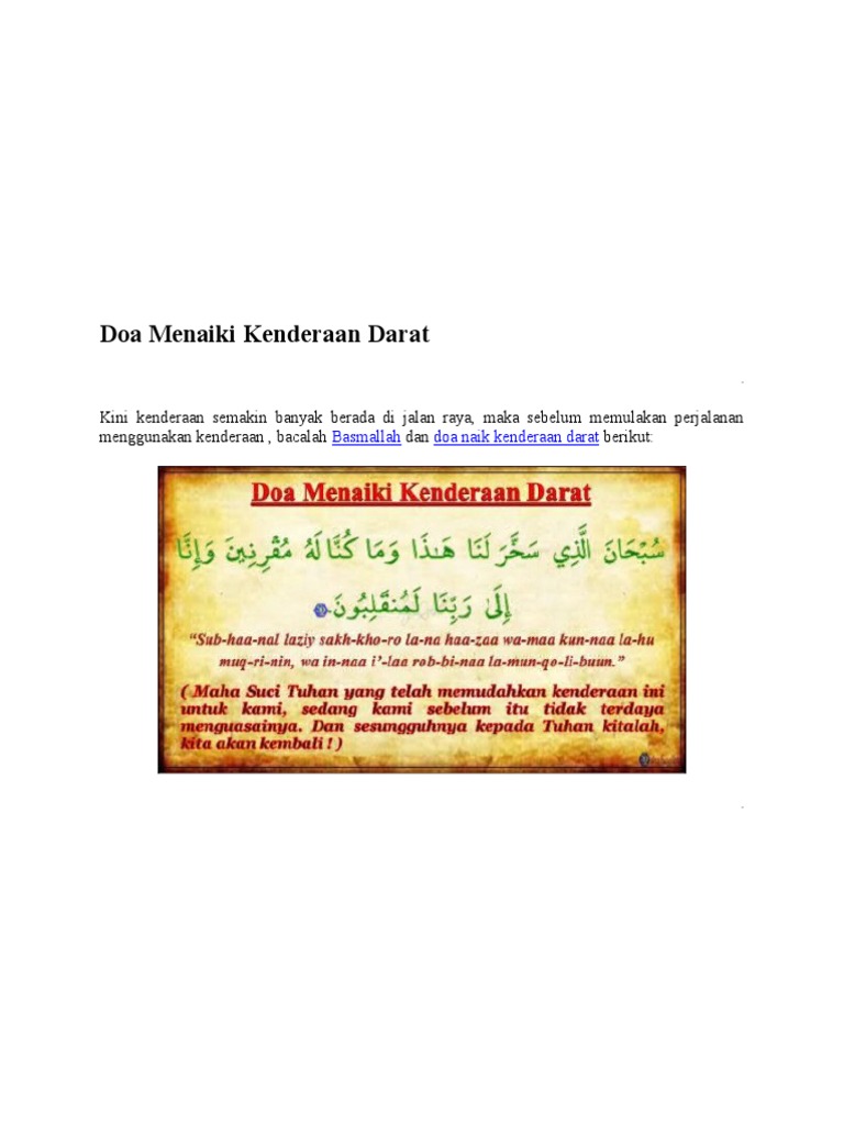 Doa Naik Kenderaan Di Darat Doa Kutipan Agama Agama