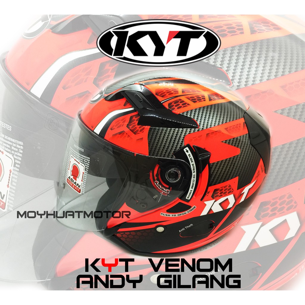 Original Kyt Venom Andy Gilang Double Visor Helmet Kyt Helmet Open Face Helmet Kyt Visor Mhr Arai Design Shopee Malaysia