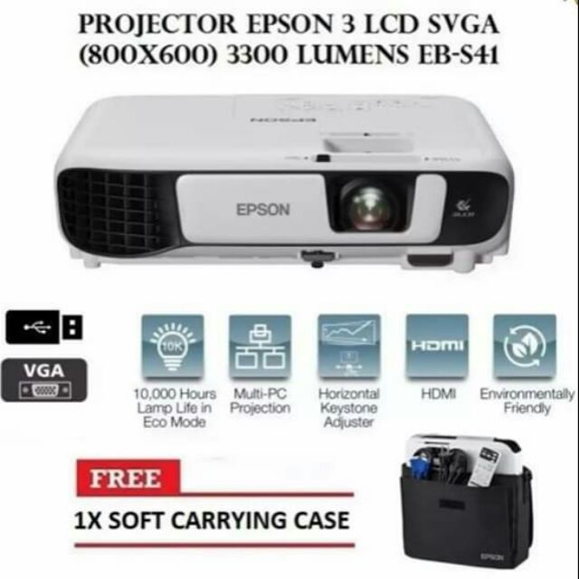 Epson Eb S41 Svga 3lcd Projector With Tripod Screen And Carry Bag Shopee Malaysia