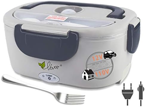 Amazon Com Electric Heating Lunch Box 110v 12v 2 In 1 Portable Electric Food Warmer Lunch Heater For Car Home Office With Removable Stainless Steel Food Container Gray Kitchen Dining