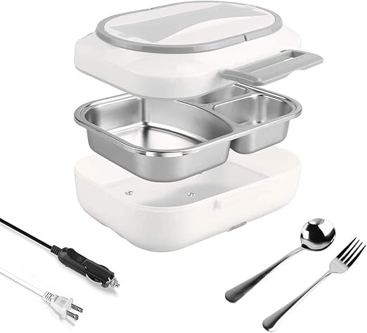 Amazon Com Heated Lunch Box 110v 24v Portable Electric Lunch Box Food Heater With Removable Stainless Steel Container Spoon And Fork With 3 Compartments Warming 2 In 1 Food Warmer For Car Home
