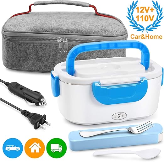 Amazon Com Electric Lunch Box Toursion Dual Use Car Truck And Work 110v 12v 24v Portable Food Warmer Deluxe Edition With Removable 304 Stainless Steel Food Heater Container Free Spoon Fork Kitchen
