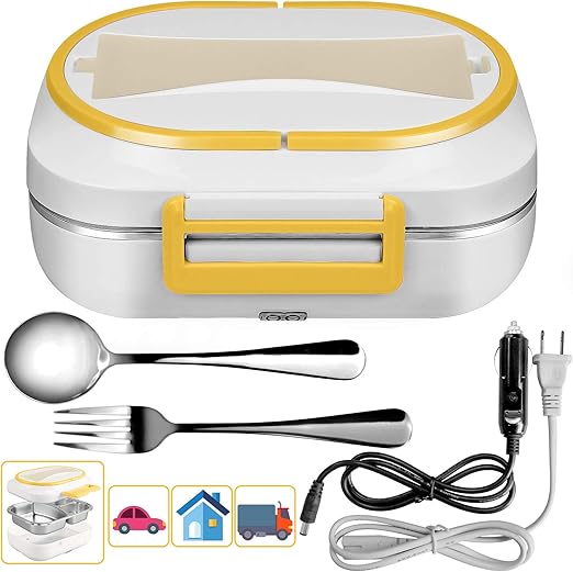 Amazon Com Benooa Electric Lunch Box For Car And Home Portable Food Heater 12v 110v Food Warmer Heating Container 2 In 1 Food Grade Stainless Steel Food Container With Fork And Spoon For Men Women 1 5l