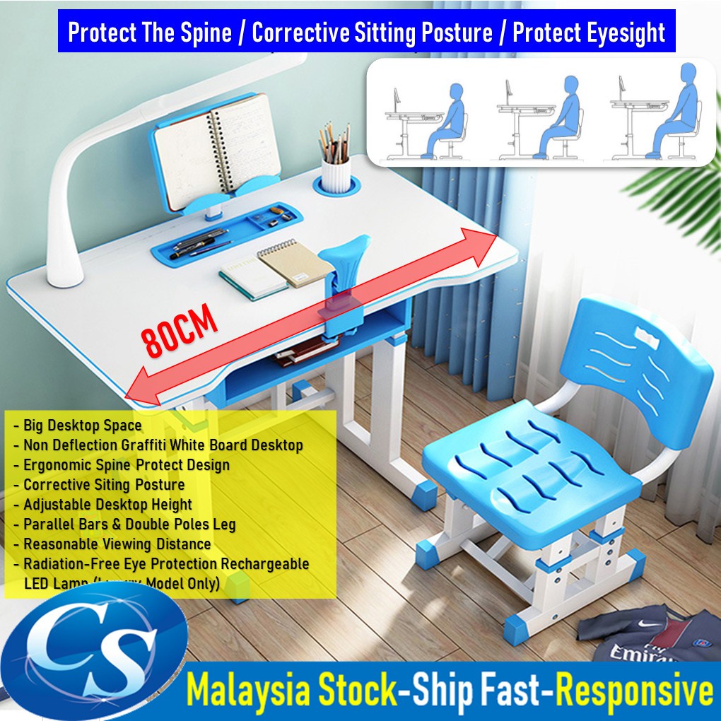 Height Adjustable Ergonomic Children Study Table Chair Set Pink Or Blue Shopee Malaysia