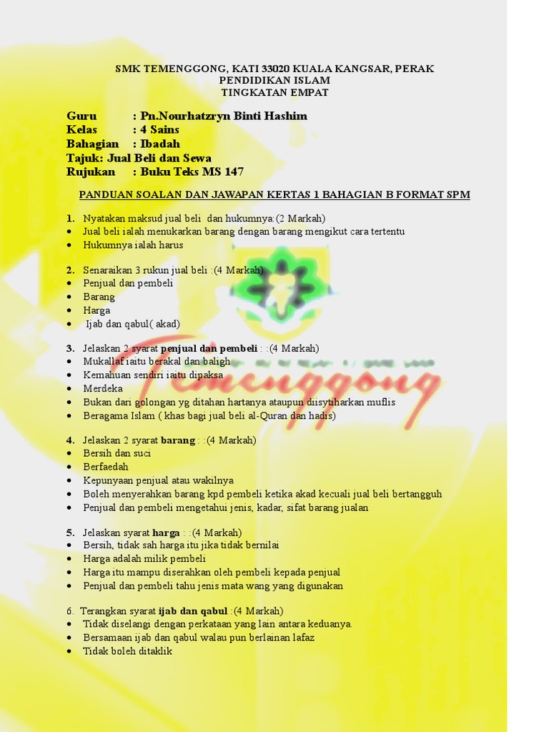 Panduan Soalan Dan Jawapan Tajuk Jual Beli
