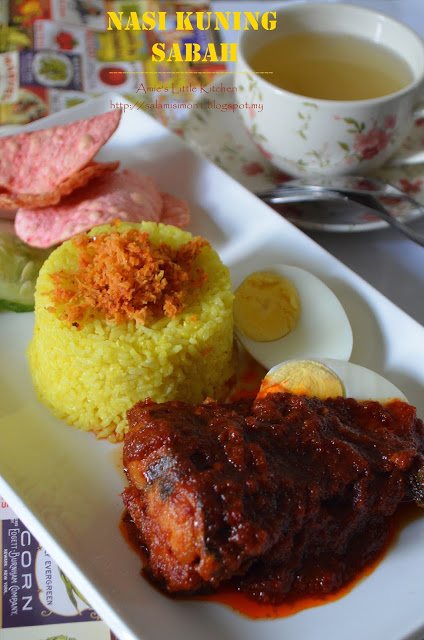 Sebenarnya aku belajar buat nasi kuning ni dari ibu mertua ku yang tersayang. Kami orang asal sabah bah tapi tinggal di semenanjung. Nowadays the nasi kuning is sold in a plastic container which is more convenient. Nasi kuning banjar terletak di inanam capital kota kinabalu sabah.