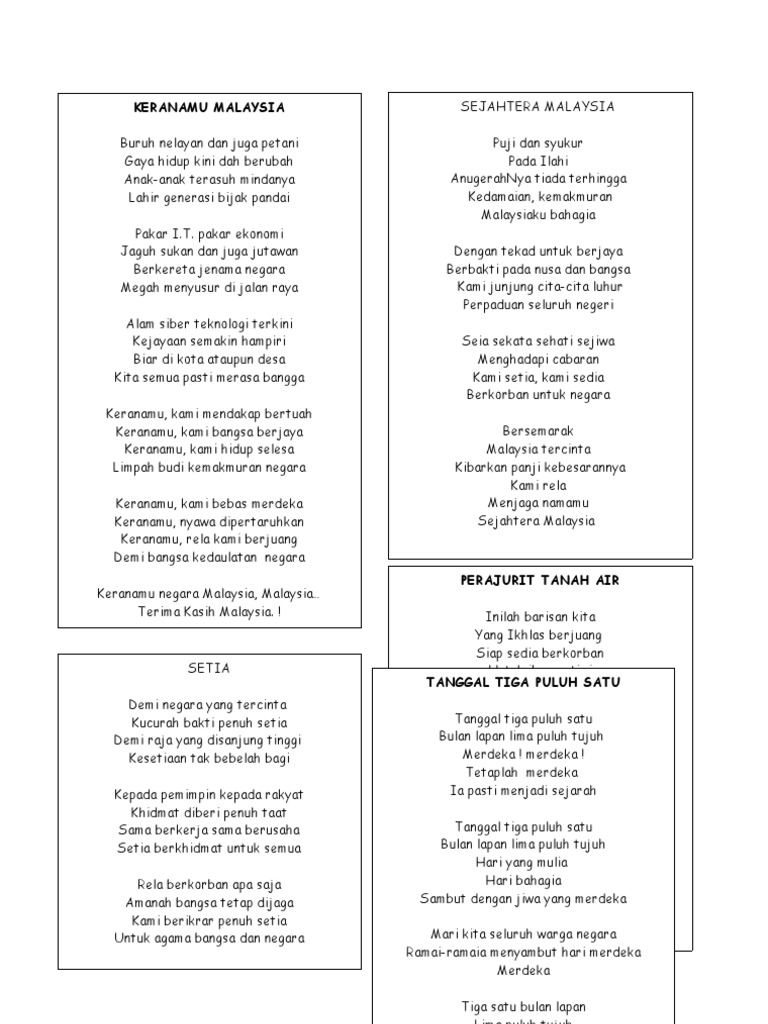 Gemuruh lirik lagu patriotik malaysia. Dengan tekad untuk berjaya berbakti pada nusa dan bangsa kami junjung cita cita luhur. Jika anda anak malaysia pastikan anda hafal lirik lagu ini. Bila bertalu rentak dikalbu hasrat yang tersirat semakin ku buru bila bergema laungan gempita harapan bernyala nadi ku berganda. Di dalam gerimis penuh rahmat dia tersentuh cendawan akrab sesegar pagi yang permai damaikan.