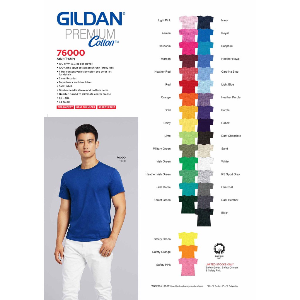 Gildan Premium Cotton Color Chart